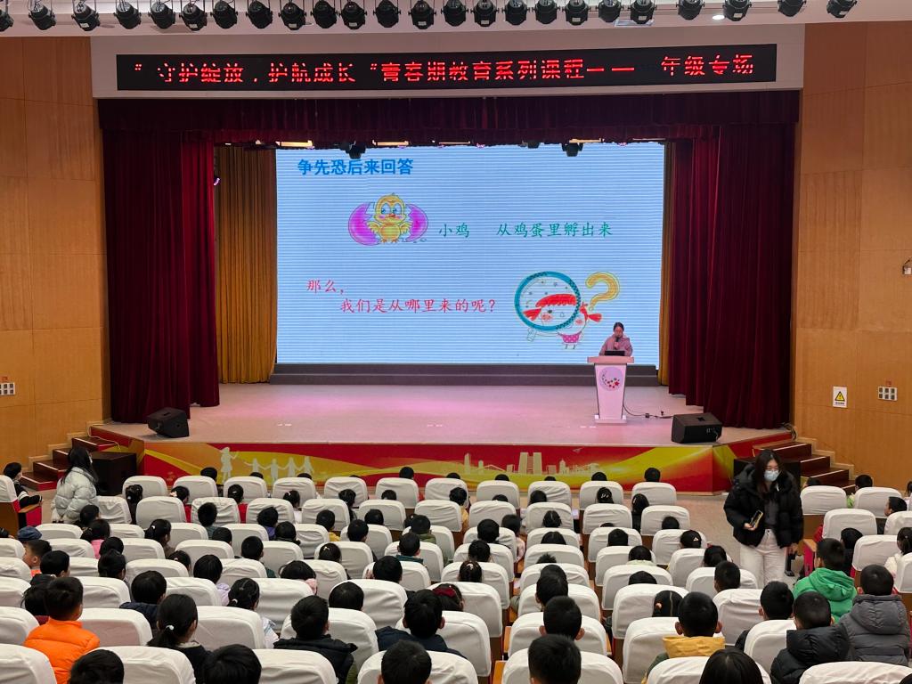 2025年12月15日下午,新星剧场内气氛热烈,一场面向一年级学生的健康教育专题课程在此举行。本次活动由兼职心理老师杨阳为孩子们讲解,旨在帮助低龄儿童科学认识生命起源,树立隐私保护意识,为身心健康成长筑牢基础。