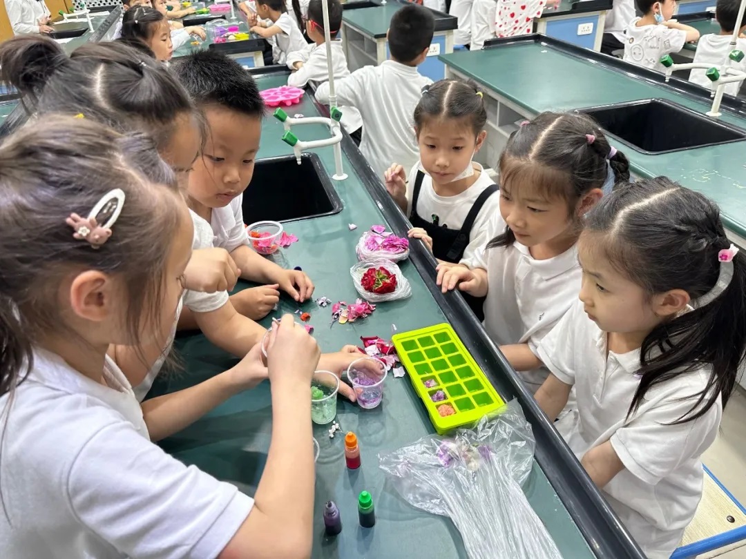 活动摒弃了单一技能训练的传统模式,创造性设计了跨学科融合的项目任务。数学与美术联袂打造的“美数花镜”中,孩子们在花园里寻找比例与对称的数学之美,并用画笔和黏土将其转化为生动的艺术表达;科学探究与劳动实践深度融合的“艺研花朵”和“快乐制皂”环节,孩子们不仅细致观察花朵构造,更亲手采摘花瓣、学习皂化原理,制作出独一无二的鲜花香皂,在真实的操作中感受知识的力量与创造的喜悦;持续的“护花之旅”和“爱花宣言”则引导孩子们从单纯的体验者转变为有责任感的守护者和宣传员,初步萌发了服务与担当的意识。