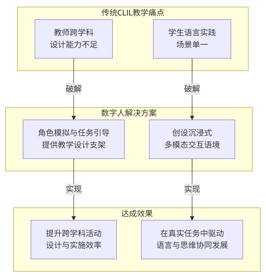 思考: 1. 技术适配性 数字人能否真正理解学生跨学科表达中的逻辑错误,比如“I will take a coat to Australia because it’s cold”与实际情况不符,这需要结合语义分析技术优化反馈精准度。 2. 教师角色转型 数字人承担部分语言支架功能后,教师应更聚焦于引导学科思维深度,比如追问“How does sunlight affect plant growth in the UK?”,避免技术依赖导致教学浅表化。 3. 伦理边界 数字人互动可能削弱生生真实交际,需平衡人机对话与小组合作的比例,保留CLIL中“交际”目标的本质。