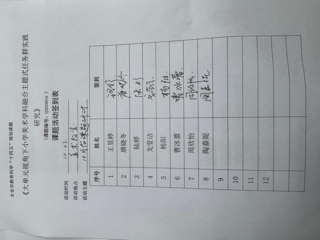 2025 年 10 月 18 日,小学美术组在美术教室开展《大单元视角下小学美术学科融合主题式任务群实践研究》课题研讨活动,聚焦三年级上册《蔬果水墨》单元,探索多学科融合与主题任务设计对学生国画素养提升的路径。